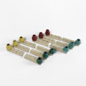 Suite de 12 porte-couteaux à décor de petits vases, céramique ém...