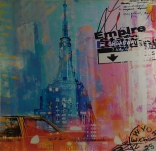 New York, technique mixte sur toile, signée au dos, 80x100 cm