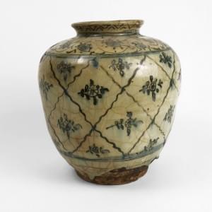 Céramique émaillée beige à décor de fleurons, H 25 cm