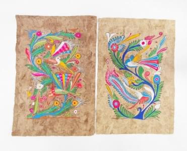 L'un à motif d'oiseaux et poissons, l'autre à décor d'un monogra...