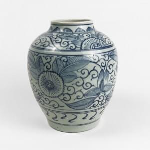 Porcelaine émaillée bleu blanc à décor de fleurs, H 23 cm