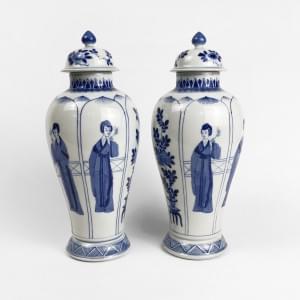 Porcelaine émaillée bleu blanc à décor d'élégantes, H 34 cm