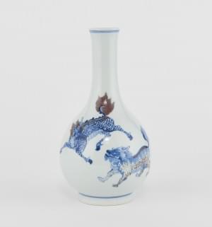 Porcelaine émaillée bleu blanc à décor d'animaux fantastiques et...
