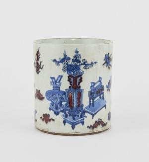 Porcelaine émaillée bleu blanc et rouge de fer à décor d'ustensi...