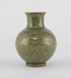 Céramique émaillée céladon à décor ciselé de fleurs, H 16 cm