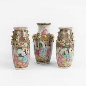 4641. NE PAS VENDRE EN APRES-VENTE Trois petits vases en Canton, Chine...