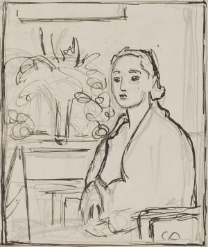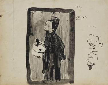 Femme dans un intérieur, encre et mine de plomb sur papier, 13x1...