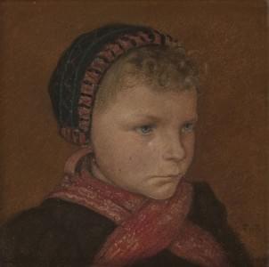 Enfant du Val d'Hérens, pastel sur papier, signé, 23x23,5 cm
