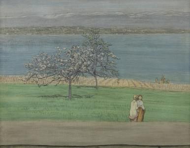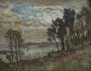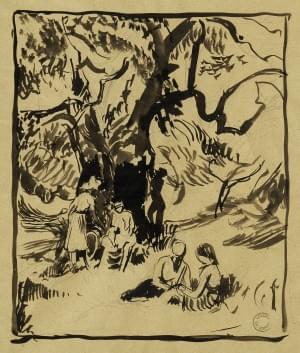 Sous les arbres en été, lavis, cachet d'atelier. Provenance Gale...