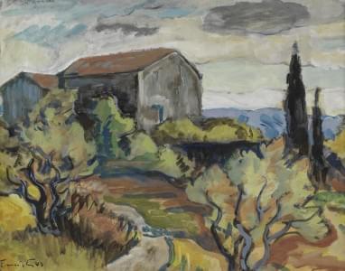 Chemin dans la campagne, huile sur carton, monogrammée, 43x64 cm