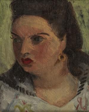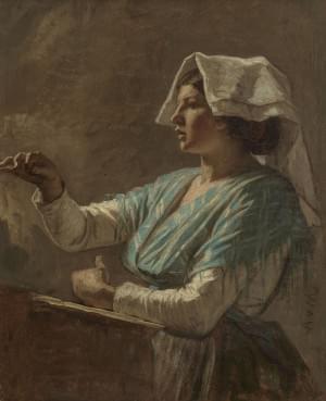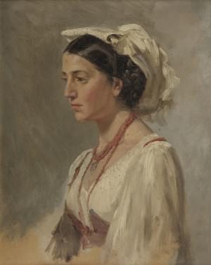 Portrait présumé de sa femme en costume italien, huile sur carto...