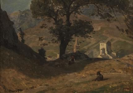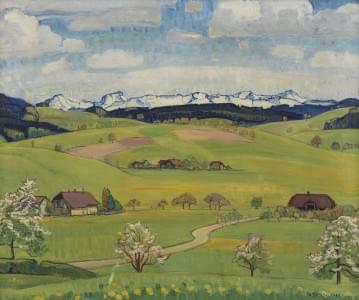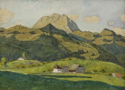 Vue de montagne près de Sion, huile sur carton, signée, 25x35 cm...