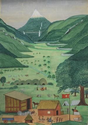 Ensemble de quatre peintures en rouleaux représentant des campem...