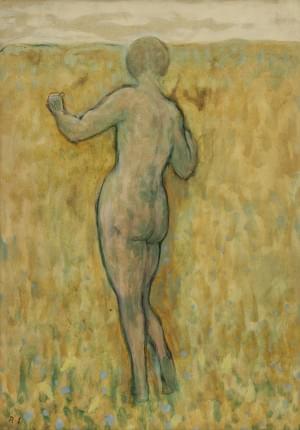 Femme au lavabo, encre et lavis sur papier, 18x22 cm