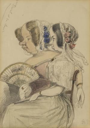 Madame Duval et sa sœur, mine de plomb sur papier, 22x16 cm