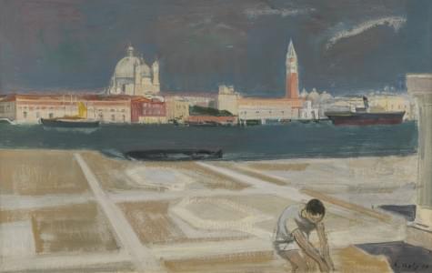 Vue de Venise, technique mixte sur panneau, 36x57 cm