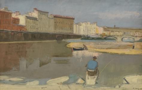 Vue de l'Arno à Florence, technique mixte sur panneau, 36x57 cm