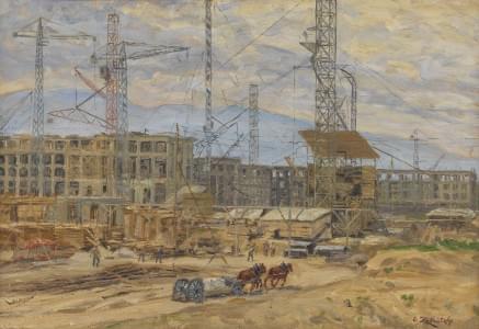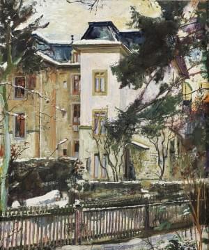 Immeuble de Berne sous la neige, huile sur toile, 100x83 cm
