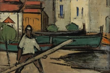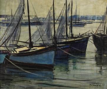 Bateaux dans les bleus, huile sur toile, signée et datée 60, 60x...