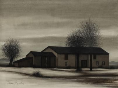 Paysage sous la neige, huile sur toile, signée, 53x72 cm