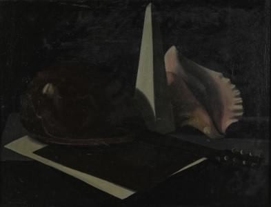 Nature morte à l'obélisque et au coquillage, huile sur toile, si...
