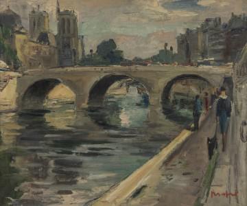 Vue du Pont Neuf à Paris, huile sur toile, 50x63 cm