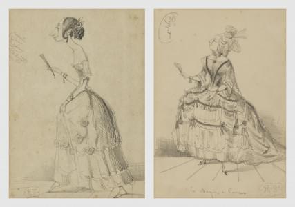 La Marquise de Carabas et Silvie, deux caricatures, mine de plom...