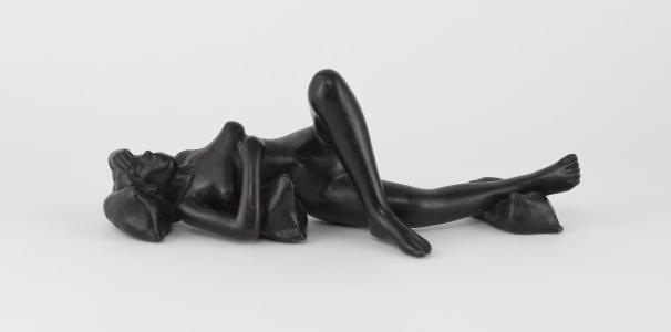 Femme allongée, signature non identifiée, bronze à patine brune,...