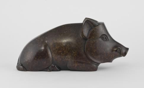 Marcassin, bronze à patine verte, signé et numéroté 14/25 sous l...