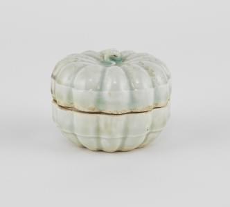 Porcelaine émaillée céladon à motif en léger relief de pétales,...