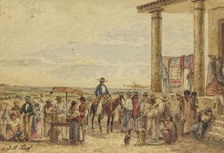 Scène de marché en Amérique du Sud, aquarelle sur papier, 13x19,...
