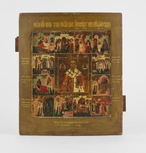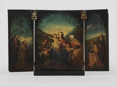 Triptyque de voyage, au centre la Vierge à l'Enfant, Sainte Elis...