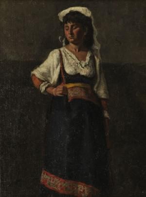Jeune femme italienne en costume, huile sur toile, 40x30 cm. Pro...