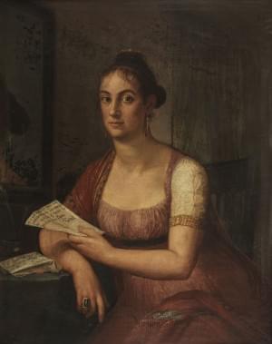 Portrait présumé de Mariquita Voitel (1816-1896) avec son carlin...