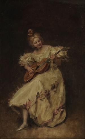 Dame jouant de la guitare, huile sur toile, signée et datée 1891...