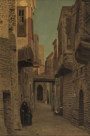 Ruelle du Caire animée, huile sur toile, 48x33 cm