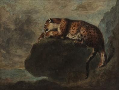 Léopard sur le rocher, huile sur toile, 46x36 cm.