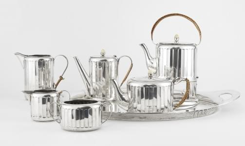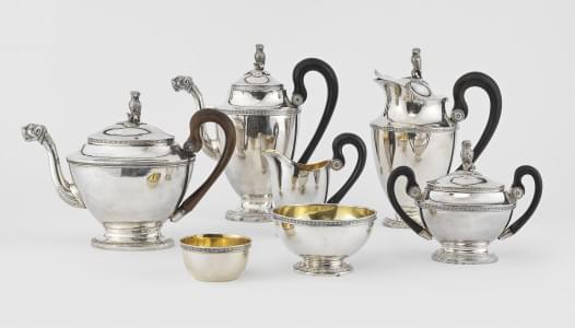 Argent, comprenant: Samovar, théière, cafetière, verseuse, crémi...