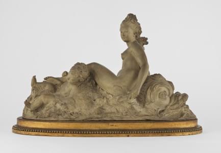 Naïade avec un monstre marin, terre cuite, signée, L 56 cm