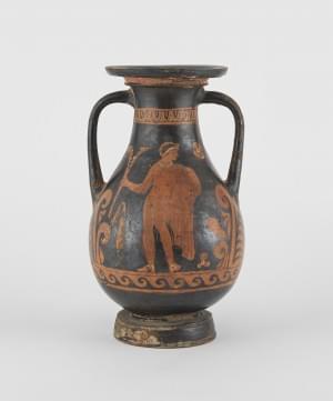 Terre cuite à figures rouges, Face A: jeune homme, un bras drapé...