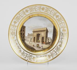 429. Assiette à décor d'une vue de la porte Saint Martin, Dihl, Paris...