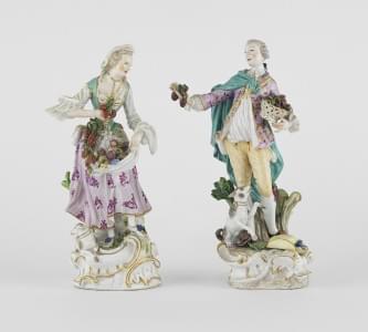 Faïence émaillée bleu blanc à décor de scènes galantes, H 26 cm