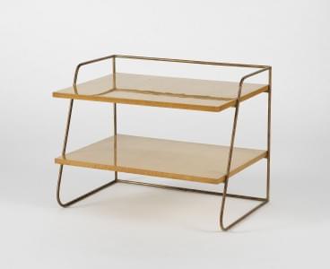 Deux plateaux en bois clair et métal doré, 53x65x47 cm. Provenan...