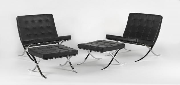 607. Paire de fauteuils et d'ottomans Barcelona par Ludwig Mies van d...
