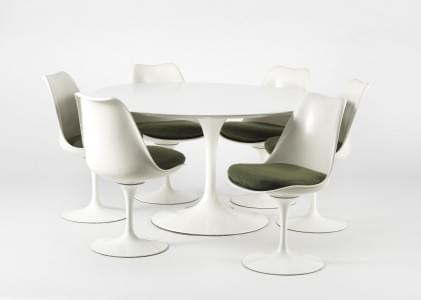 608. Table de salle à manger ronde et six chaises par Eero Saarinen (...