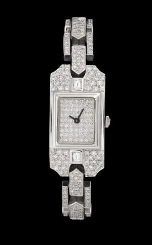 172. Montre-bracelet rectangle à quartz sertie de diamants, mouvement...