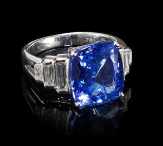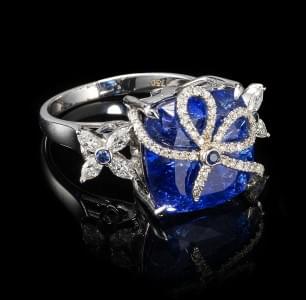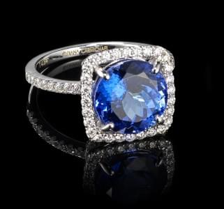 219. Bague sertie d'une tanzanite taille brillant (4,84 ct) entourée...