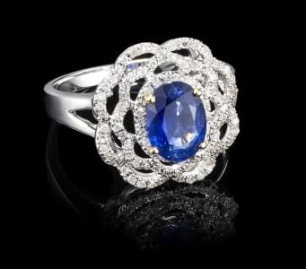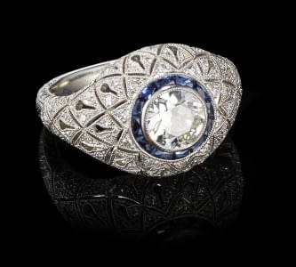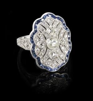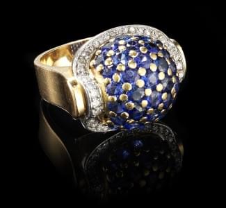 263. Bague dôme pavée de saphirs entourés d'une ligne de diamants