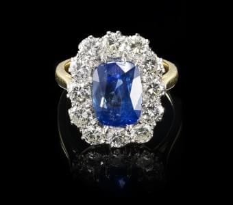Entouré de diamants taille brillant, épaulé de diamants taille t...