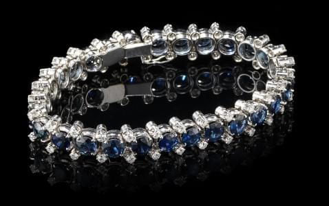 258. *Bracelet ligne composé de saphirs taille ovale (env. 16 ct)